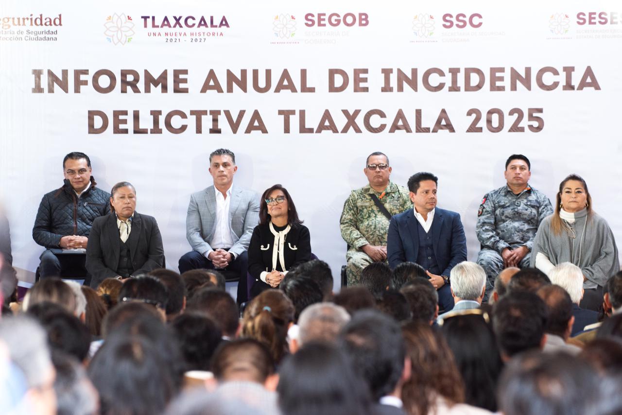 Autoridades presentan el Informe Anual de Incidencia Delictiva Tlaxcala 2025; Lorena Cuéllar anuncia reforzamiento de patrullajes, iluminación, operativos y tecnológica, para que la seguridad que muestran los datos se sienta en la calle.