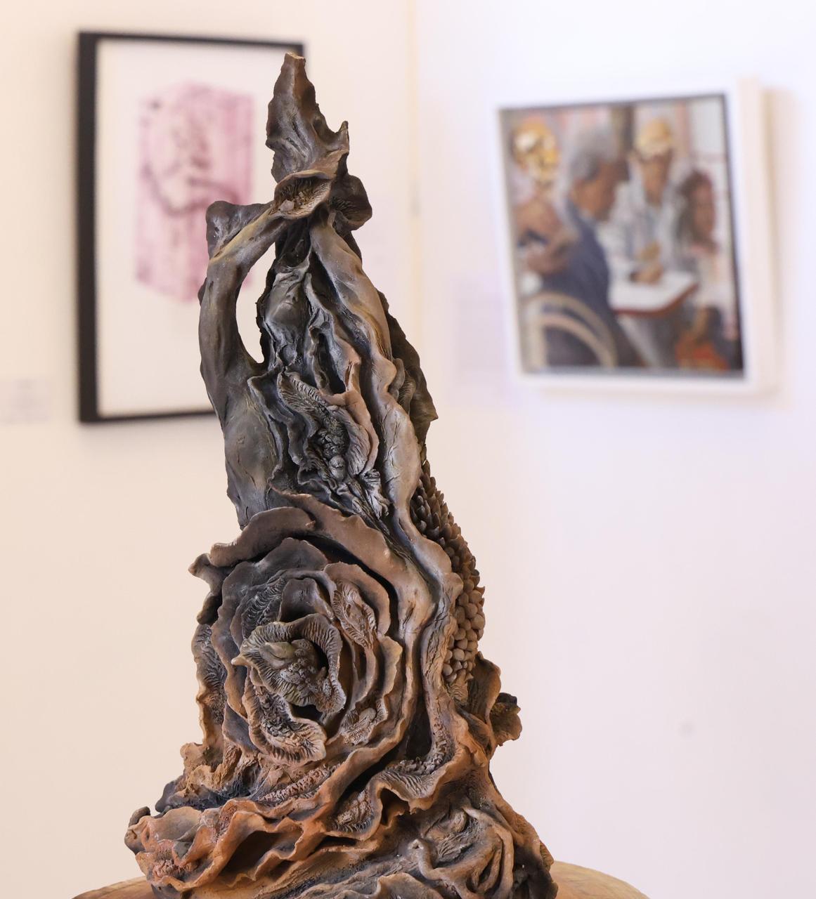 Y en la categoría de escultura, Gregoria García Nava, fue galardonada con el primer lugar por “La voz de las hijas de Tlaxcala: Raíces que florecen desde el corazón del maíz”. El segundo lugar fue para Daniel Delgado Herrera, con su obra “En la memoria del aguacate, lo ancestral era la utopía / Juego para dos personas”.