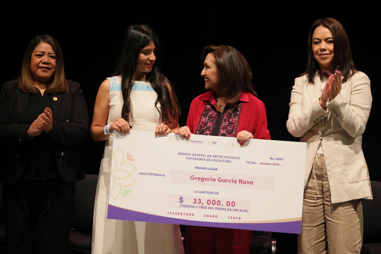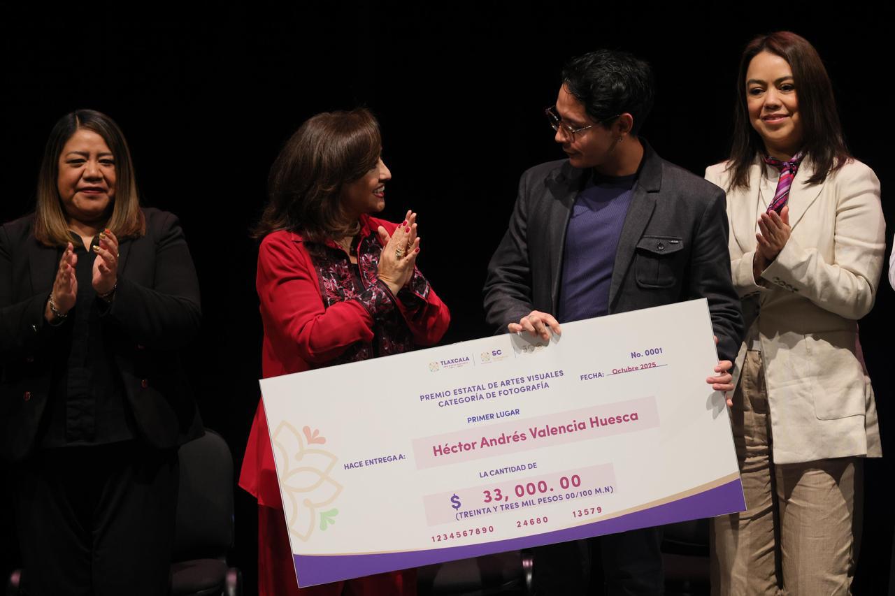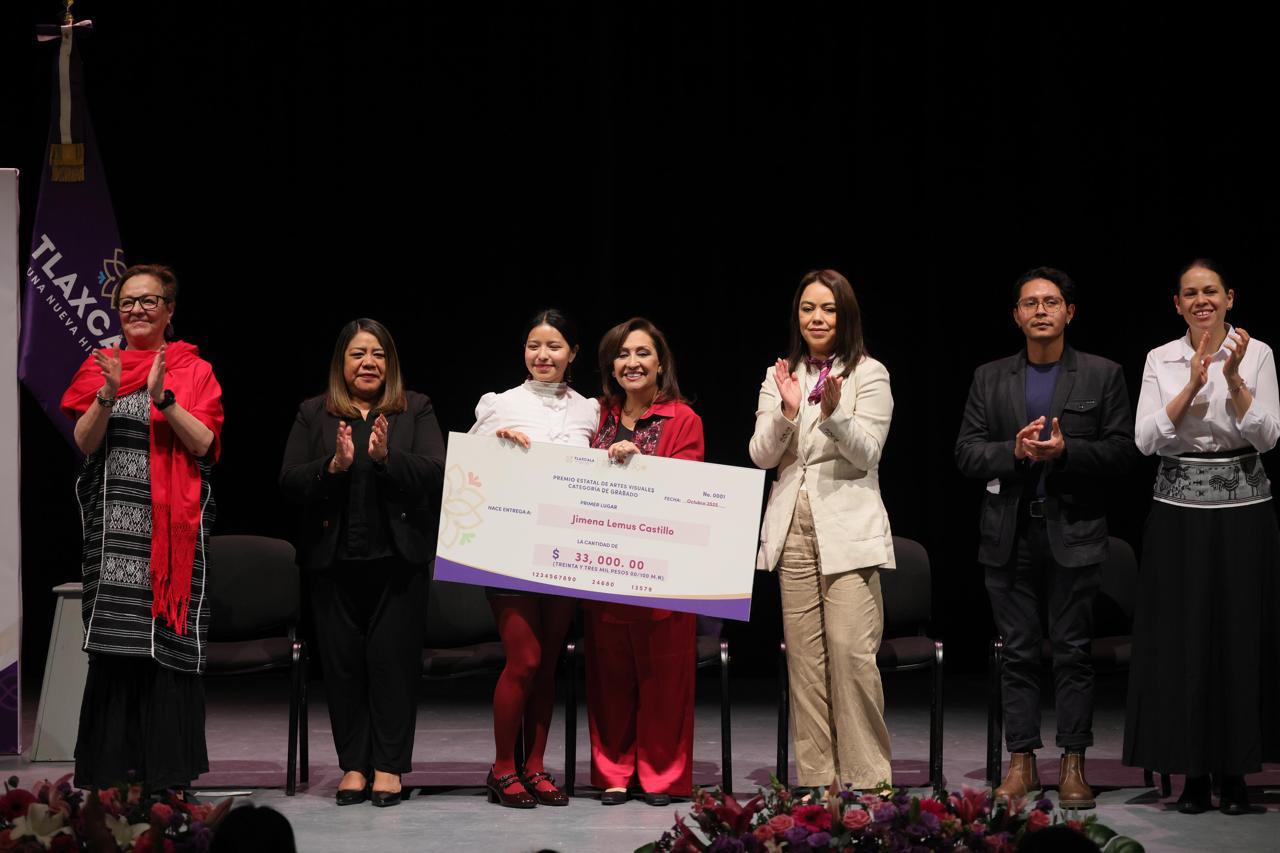 En el Teatro Xicohténcatl, los galardonados de los Premios Tlaxcala de Artes Visuales fueron ovacionados. El primer lugar en la categoría de dibujo fue Erika Sabinal Cholula, por su obra “Retrato, analogía sobre el mural de la batalla”. El segundo lugar lo obtuvo Óscar Leonardo González Flores, con “Herencia: Lozanía y declive”.