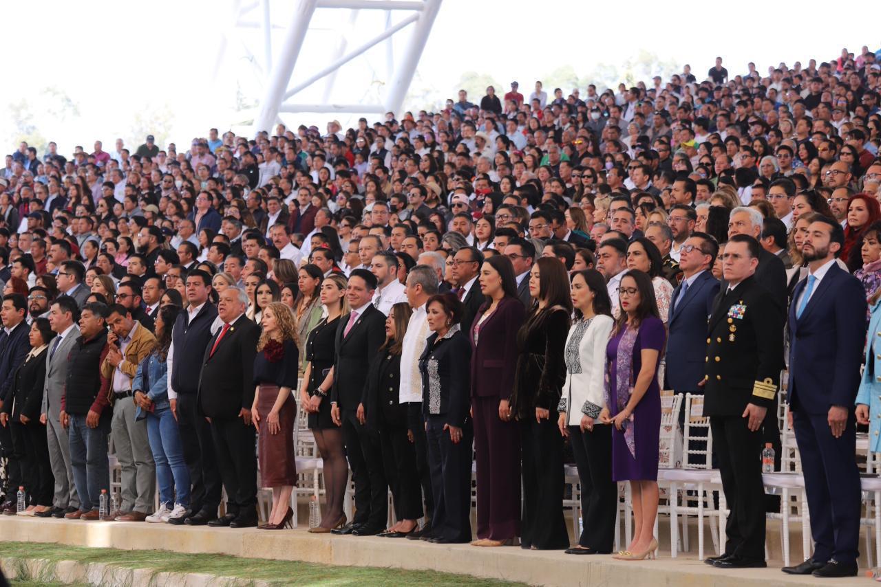 Lorena Cuéllar indicó que su gobierno ha cumplido 283 de los 300 compromisos de campaña lo que demuestra que “en Tlaxcala la palabra se honra, y que gobernamos con los principios de la Cuarta Transformación: no mentir, no robar y no traicionar al pueblo”. En tal sentido, y tras recordar que Tlaxcala tiene la menor extensión territorial y el presupuesto más bajo del país, aseveró que se han logrado resultados contundentes “con honestidad, austeridad, disciplina financiera y una planeación estratégica que cuida cada peso del pueblo de Tlaxcala”.