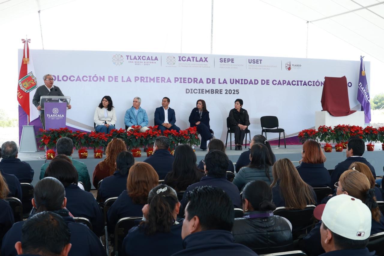 La gobernadora Lorena Cuéllar Cisneros encabezó la develación de la primera piedra de lo que será la nueva Unidad del Instituto de Capacitación para el Trabajo de Tlaxcala (Icatlax) en Tlaxco, que en una primera etapa contempla una inversión de 6.1 millones de pesos. La obra se desarrollará bajo un enfoque agropecuario que impulsará la empleabilidad, la productividad y el bienestar comunitario en el municipio.