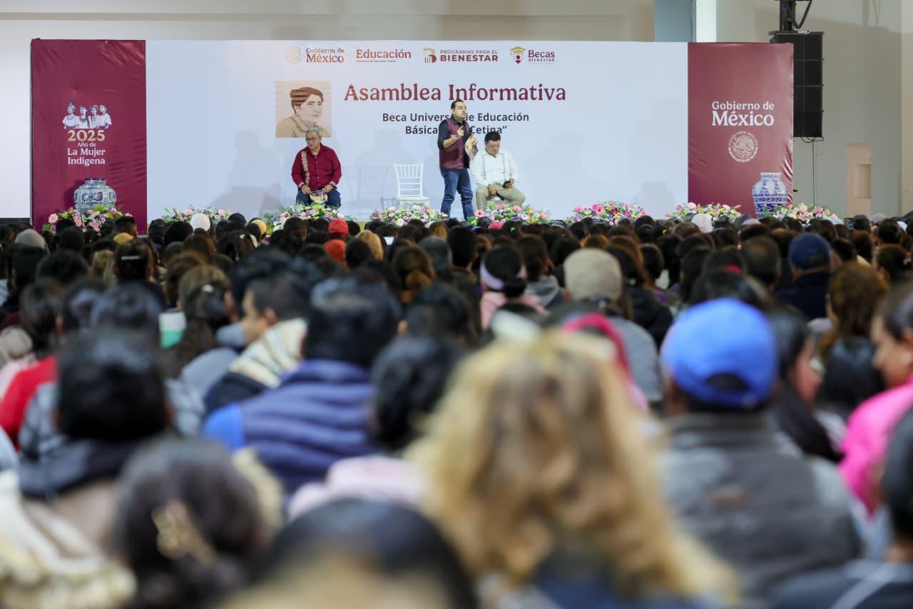 El coordinador nacional de las Becas para el Bienestar, Julio León Trujillo, encabezó una asamblea informativa con mil 500 padres y madres de familia que conocieron el proceso de incorporación para que sus hijos reciban el apoyo económico.