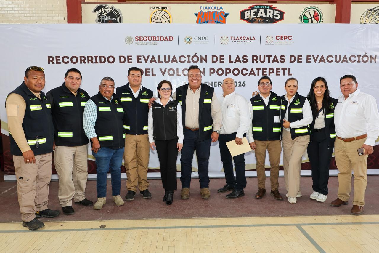 Se realizó un recorrido de evaluación para verificar el estado de las rutas de evacuación y refugios temporales en Tlaxcala, como parte de las acciones preventivas impulsadas por el Gobierno de México para salvaguardar a la población ante una posible emergencia volcánica.