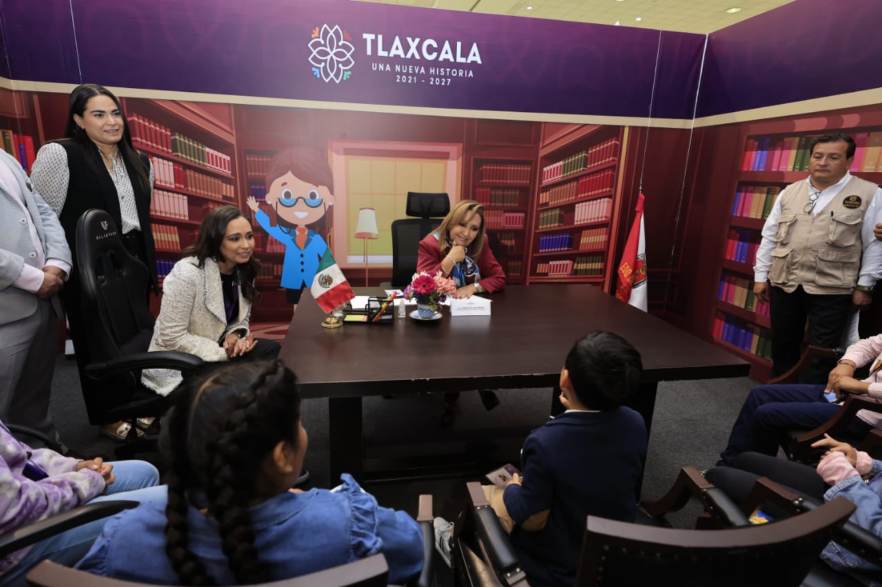 En la “Ciudad de las y los Niños” está el Despacho de la Gobernadora, donde sostuvo audiencia con las y los niños Santiago, Atziri, Bladimir, Liz y Sinaí, quienes le hicieron preguntas y peticiones como que todas y todos los niños tengan acceso a la educación en las mejores condiciones, a lo que la mandataria respondió que en el actual gobierno impulsa la construcción de aulas de preescolar, además escuelas nuevas y cinco nuevas universidades.
