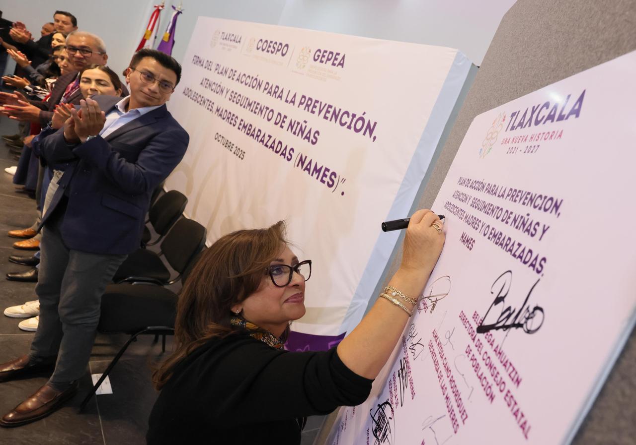 “Por eso, hoy firmamos este plan estructurado en tres ejes rectores que ofrece un acompañamiento integral en las áreas más sensibles y determinantes. Uno de estos ejes nos reúne con todos los municipios, a través de sus grupos municipales, para la prevención del embarazo en adolescentes. Hoy, todos nosotros estamos marcando un hito en Tlaxcala”, aseguró.