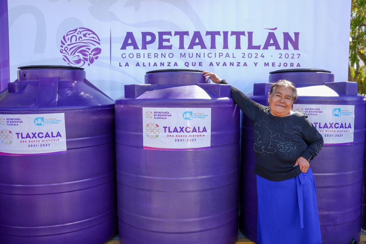 Con la entrega de tinacos en Apetatitlán, se eleva la calidad de vida y brinda mayor seguridad hídrica a familias con rezagos.