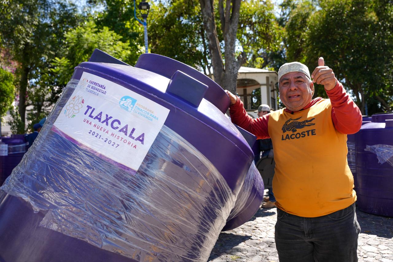 La Secretaría de Bienestar del estado continúa la entrega de tinacos para mejorar las condiciones de vivienda de familias tlaxcaltecas vulnerables y asegurar que más hogares cuenten con agua disponible para su uso diario.