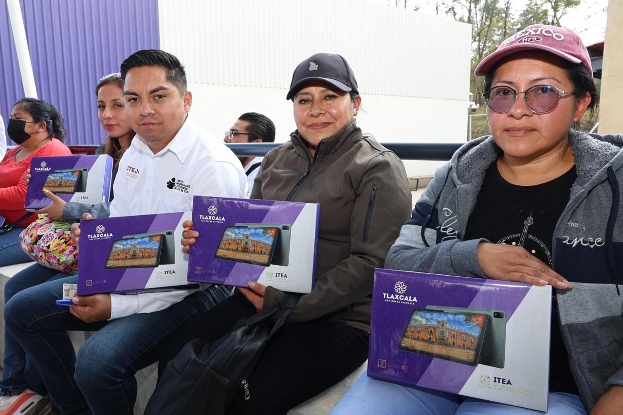 La gobernadora Lorena Cuéllar Cisneros encabezó la entrega de 100 tabletas electrónicas a asesores educativos voluntarios del Instituto Tlaxcalteca para la Educación de Jóvenes y Personas Adultas (ITEJPA), como parte de una estrategia orientada a fortalecer los procesos de alfabetización y educación básica mediante el uso de herramientas tecnológicas.