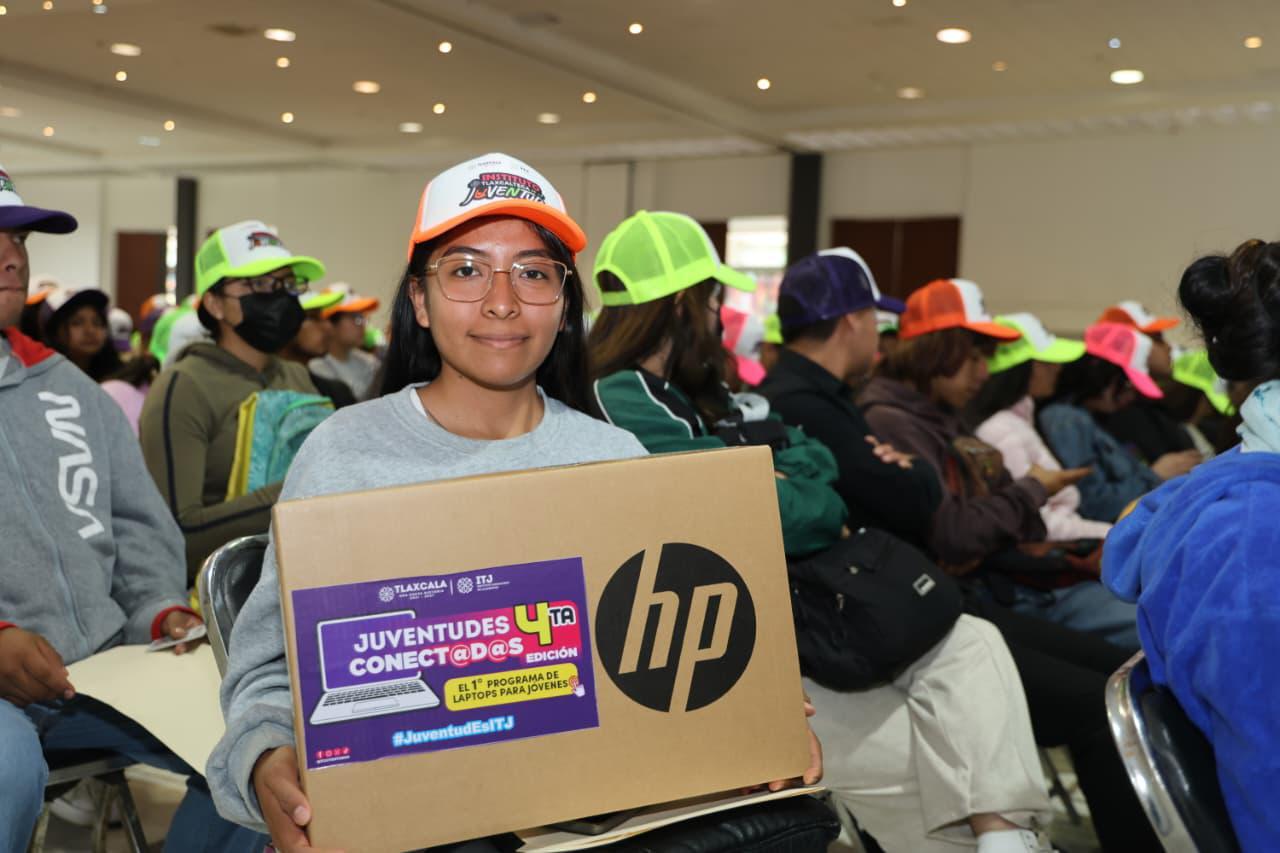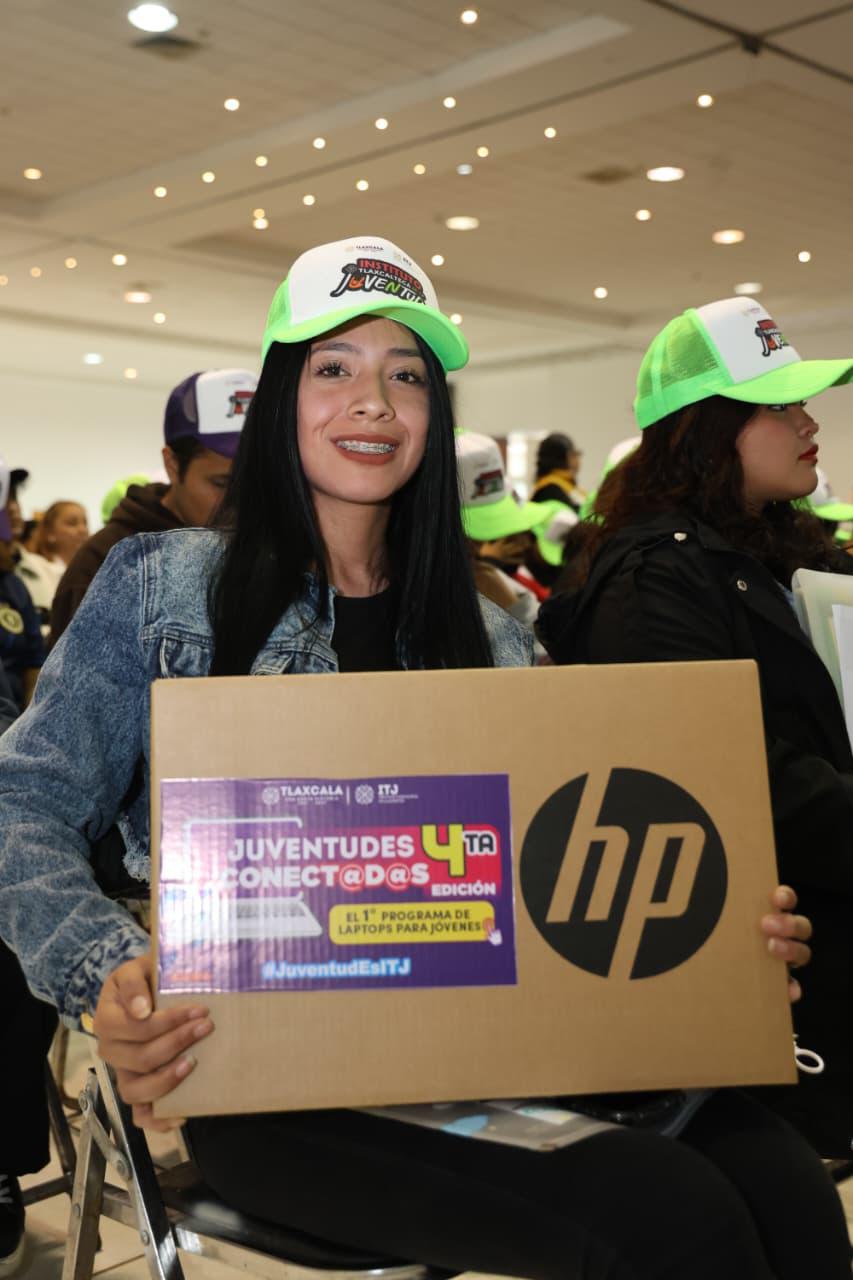 La directora general del Instituto Tlaxcalteca de la Juventud (ITJ), Lucero Morales Tzompa, destacó la inversión de 4.5 millones de pesos para la entrega de las computadoras portátiles a bajo costo a través del programa Juventudes Conectadas. El Gobierno del Estado aporta el 80 por ciento del costo y cada joven beneficiado el porcentaje restante, equivalente a mil pesos.