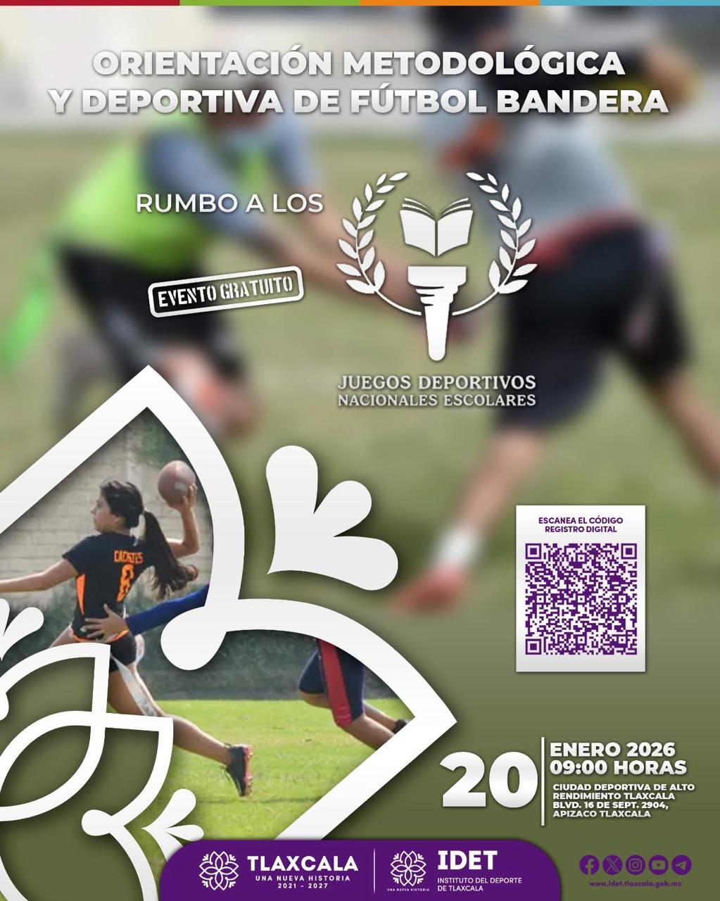 Asimismo, se impartirá el Curso de Orientación Metodológica y Deportiva de Fútbol Bandera, con propósito de actualizar conocimientos y fortalecer las bases técnicas y pedagógicas del deporte escolar en la entidad. Esta capacitación se desarrollará el 20 de enero de 2026, en el mismo horario y sede.