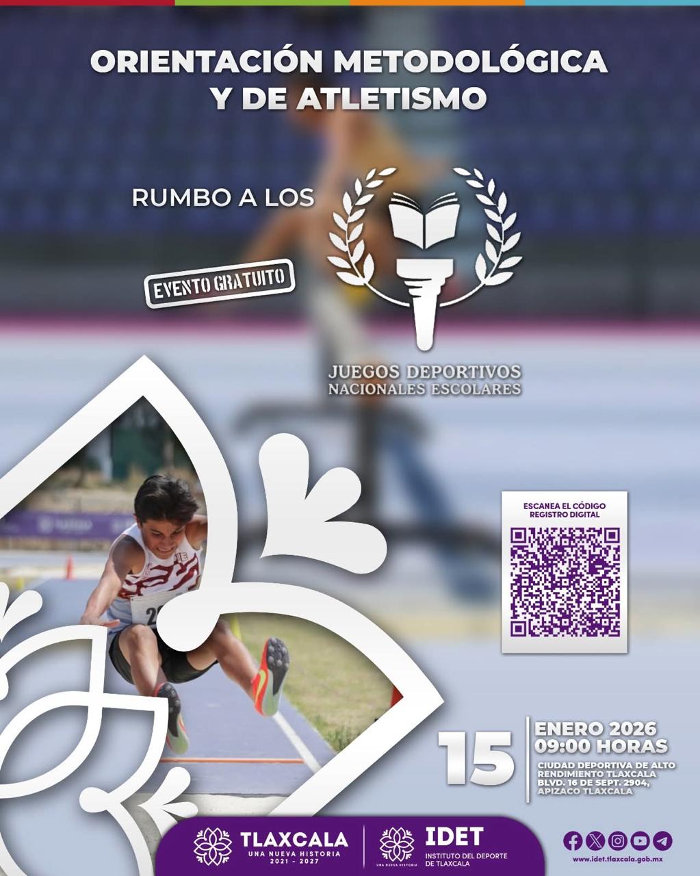 Como parte de las acciones de preparación rumbo a los Juegos Deportivos Nacionales Escolares de la Educación Básica 2025–2026, el Instituto del Deporte de Tlaxcala (IDET) llevará a cabo el Curso de Orientación Metodológica y Deportiva de Atletismo, dirigido a entrenadores, docentes, promotores y personas interesadas en el desarrollo del deporte escolar.