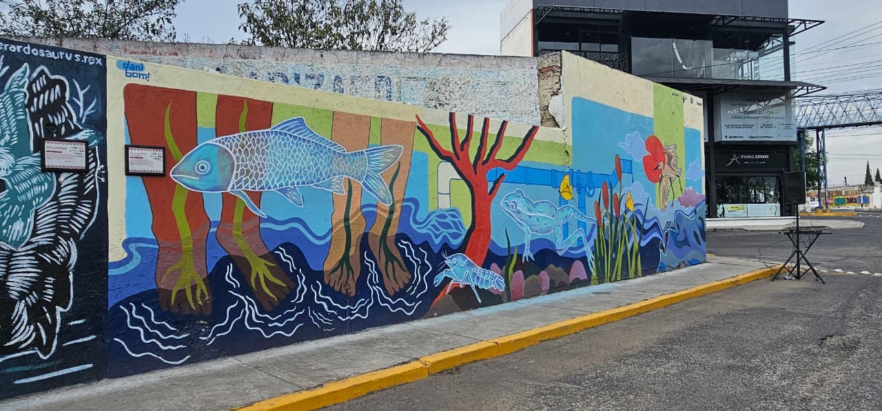 “Murales por el Agua” es una iniciativa artística desarrollada en coordinación con la Comisión Nacional del Agua (CONAGUA) y la empresa COMEX que busca resaltar la relación de la comunidad con su entorno hídrico y promover una cultura de cuidado del agua.