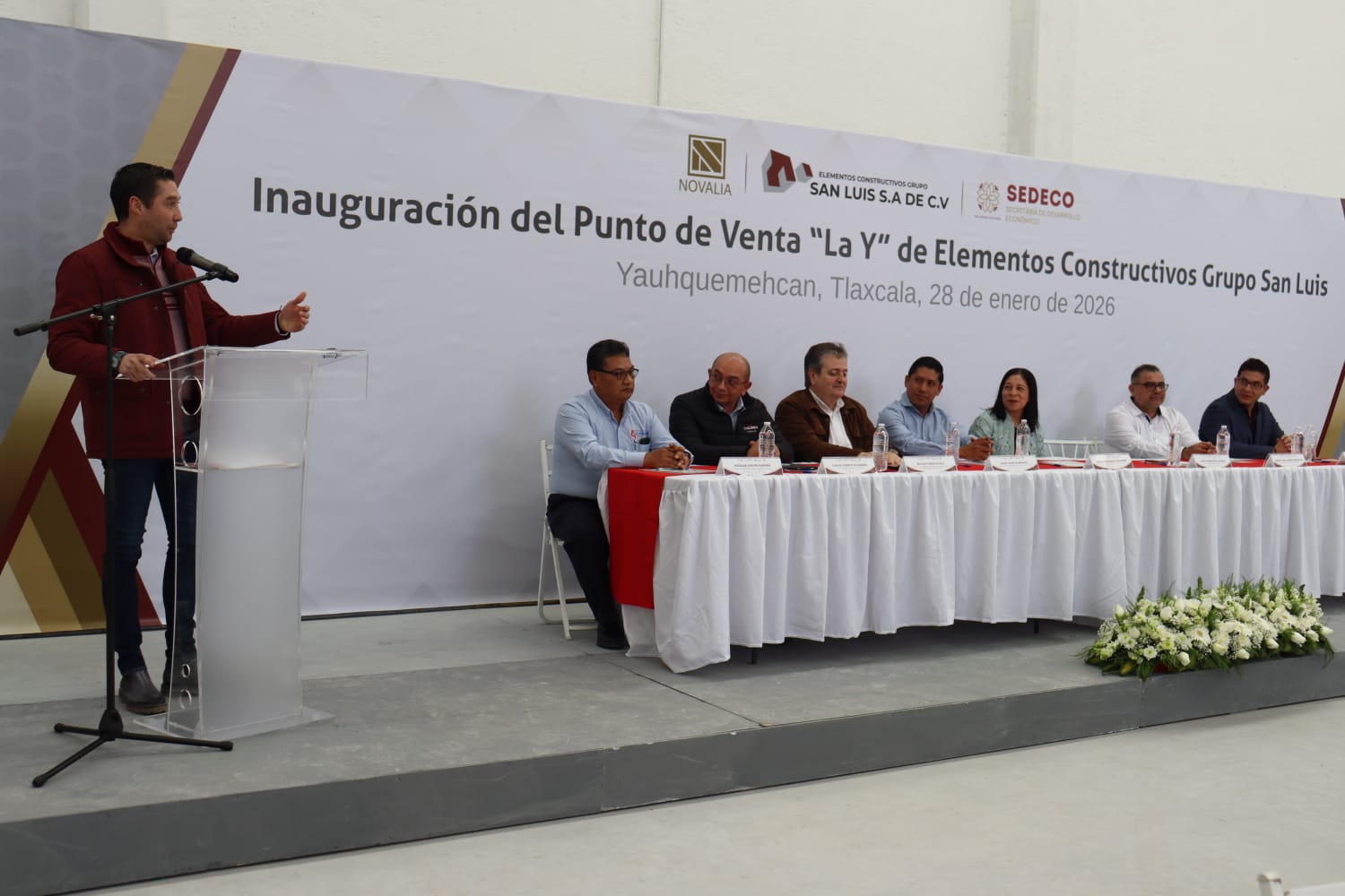 El acto inaugural fue encabezado por el secretario de Desarrollo Económico, Javier Marroquín Calderón, quien estuvo acompañado por el presidente de la Cámara Mexicana de la Industria de la Construcción (CMIC) en Tlaxcala, Pedro Enrique Guarneros Ortiz, así como por directivos de la empresa y representantes de marcas líderes del sector.